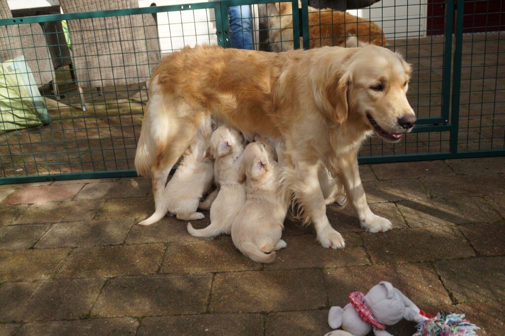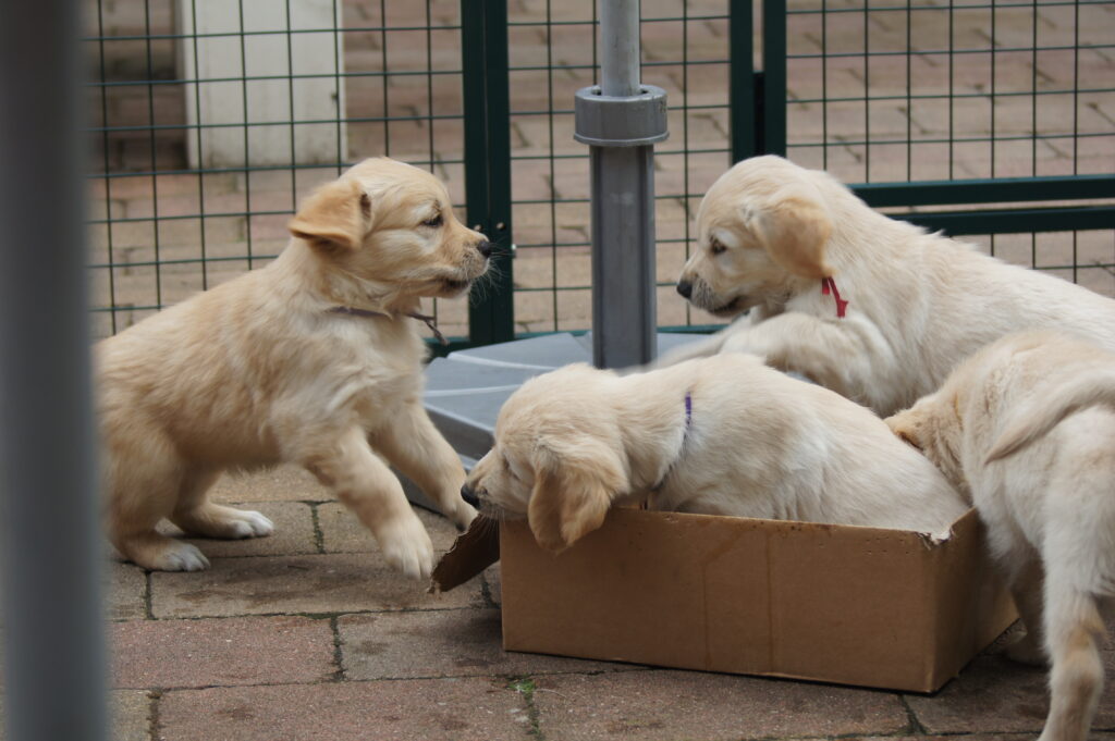 Wij hebben niet vaak een nestje. Maar als we een nestje hebben dan genieten we volop. Onze honden en de puppy’s leven bij ons in huis. Het is belangrijk voor de puppy’s dat ze goed gesocialiseerd worden. Dus als we puppy’s hebben krijgen we veel bezoek. En als ze wat groter zijn dan spelen ze buiten en mogen ze mee met de auto en maken ze een wandelingetje in de buurt.